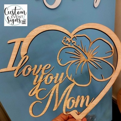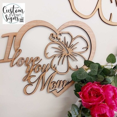 This is a stunning wooden sign made from either plywood or MDF in the shape of a heart, perfect for celebrating Mother’s Day.